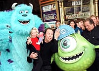 | 10月28日(日)、ハリウッド&ハイランドの向かいにあるエル・キャピタン劇場でディズニーの新作アニメ『モンスターズ・インク』のプレミアが行われた。子ども向け映画のため、昼12時から行われた同プレミアにはセレブが家族連れで現れた。 |